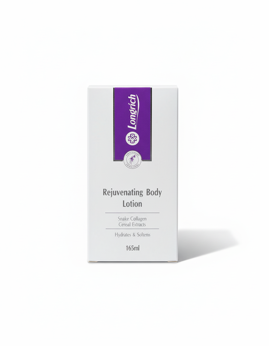 Le Longrich Rejuvenating Body Lotion est un soin corporel hautement nutritif, formulé pour régénérer la peau, restaurer son élasticité et prévenir le dessèchement cutané. Grâce à sa combinaison unique de collagène de serpent et d’extraits céréaliers, il offre une hydratation durable et une texture veloutée.